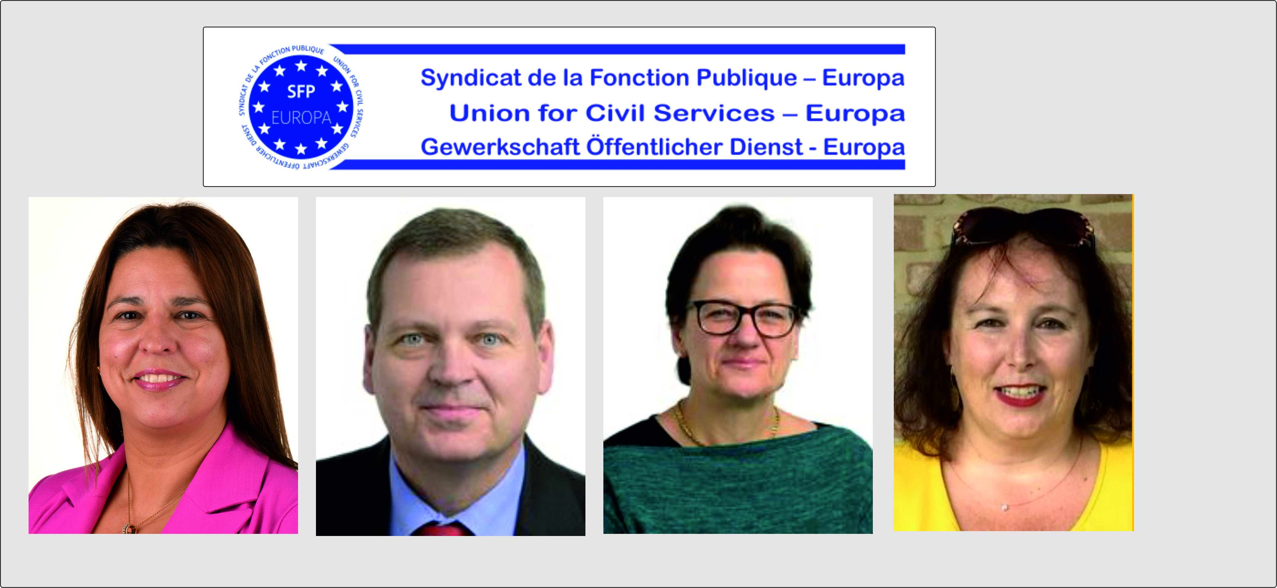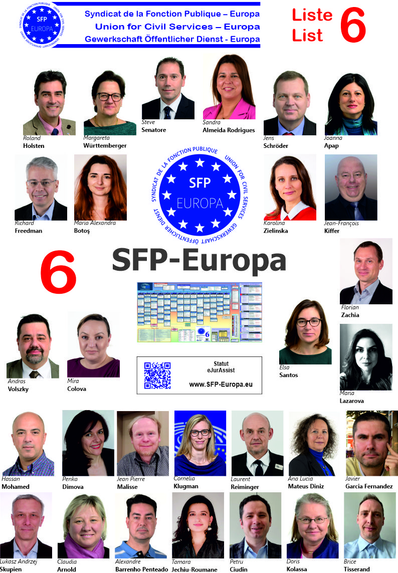 Attention aux métiers pénibles à 66 ans ! 8. Personnes moins valides Travail continu sur l’inclusion et le soutien pour les personnes moins valides mais aussi des collègues qui en assument la charge). 9. Groupes politiques Quid des élections 2024 ! 10. Administration du futur eDemocracy et eAdmin ! Mais avec circonspection ! 11. Fonction publique de l’UE Défense des compétences. 12. Révision du Statut ATTENTION 2024/25 ! Le SFP-Europa y sera attentif